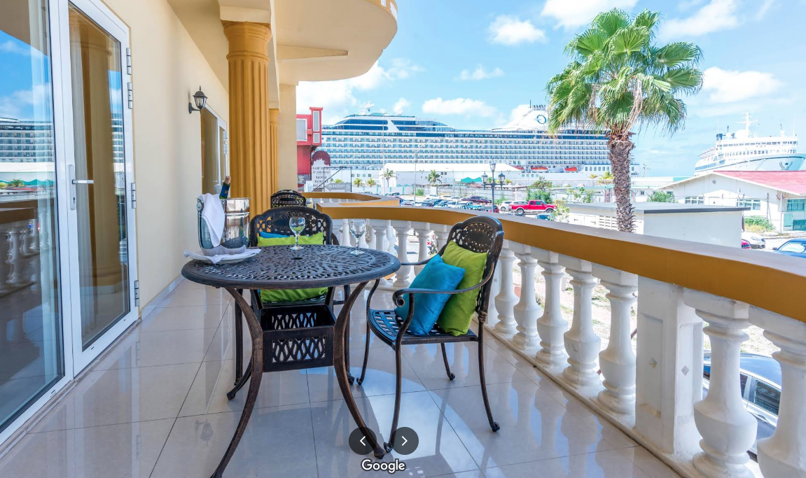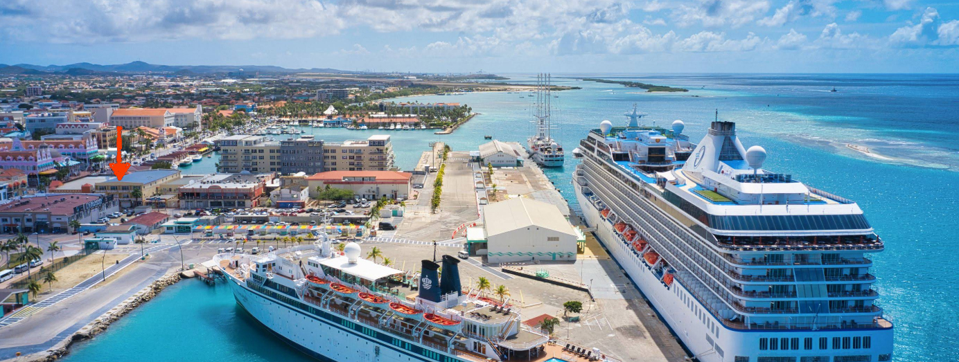 Edificio de apartamentos turísticos, ubicado en el centro de Oranjestad, Aruba, con vistas al puerto y a la ciudad.