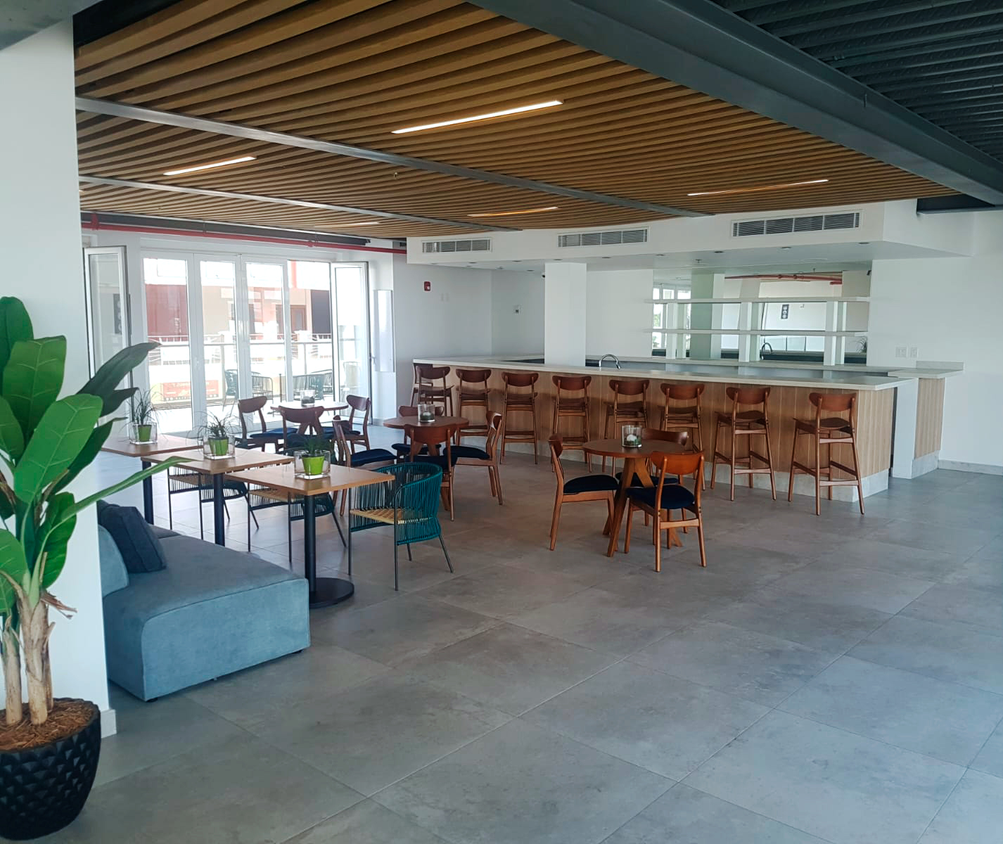 Cuenta con Piscina, Gimnasio, y Zona de estar en el nivel del Lobby, y zona de esparcimiento con pérgola en el nivel Roof Top.