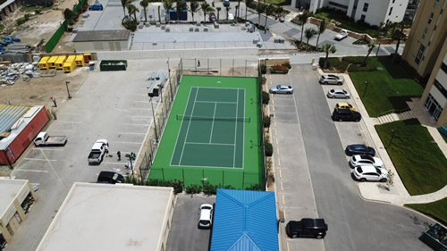 INFRA SUR GLOBAL S.L., ha sido el proveedor de materiales tales como porcelánico TODO MASA (recomendado para alto tráfico), mamparas de baño , iluminación exterior, mobiliario para exterior resistente a rayos UV, pérgolas metálicas, sombrillas para el área de piscina, mosaico para revestimiento de piscinas, barandillas de acero inoxidable, pista de tenis.