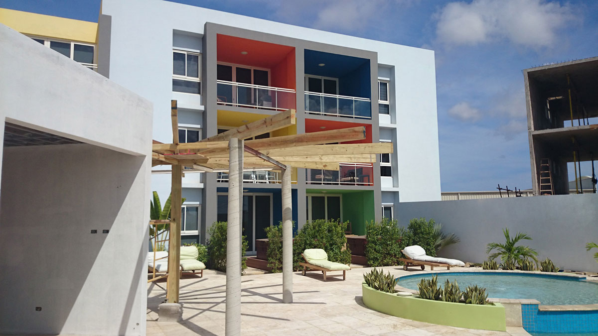 Recientemente realizado el Open House, este exclusivo complejo de 8 apartamentos ubicado muy cerca de los principales hoteles de Palm Beach (Aruba), ha contado con INFRA SUR GLOBAL S.L. para el suministro de porcelánico para interiores y exteriores, baldosas de mármol, revestimiento ornamental de madera para fachada, sanitarios, griferías, muebles y accesorios de baño.